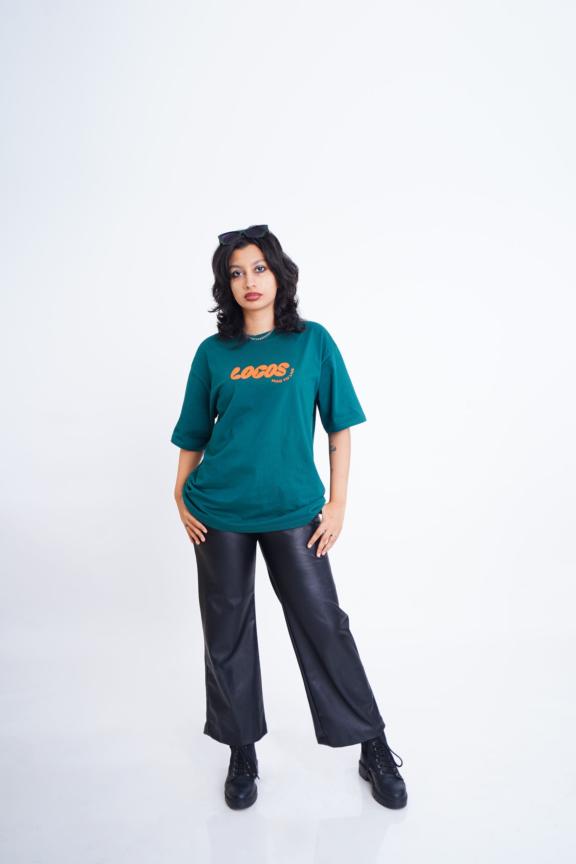 Loose-fitting tshirt featuring a round neck, short sleeves. Contrast prints on the front and back
