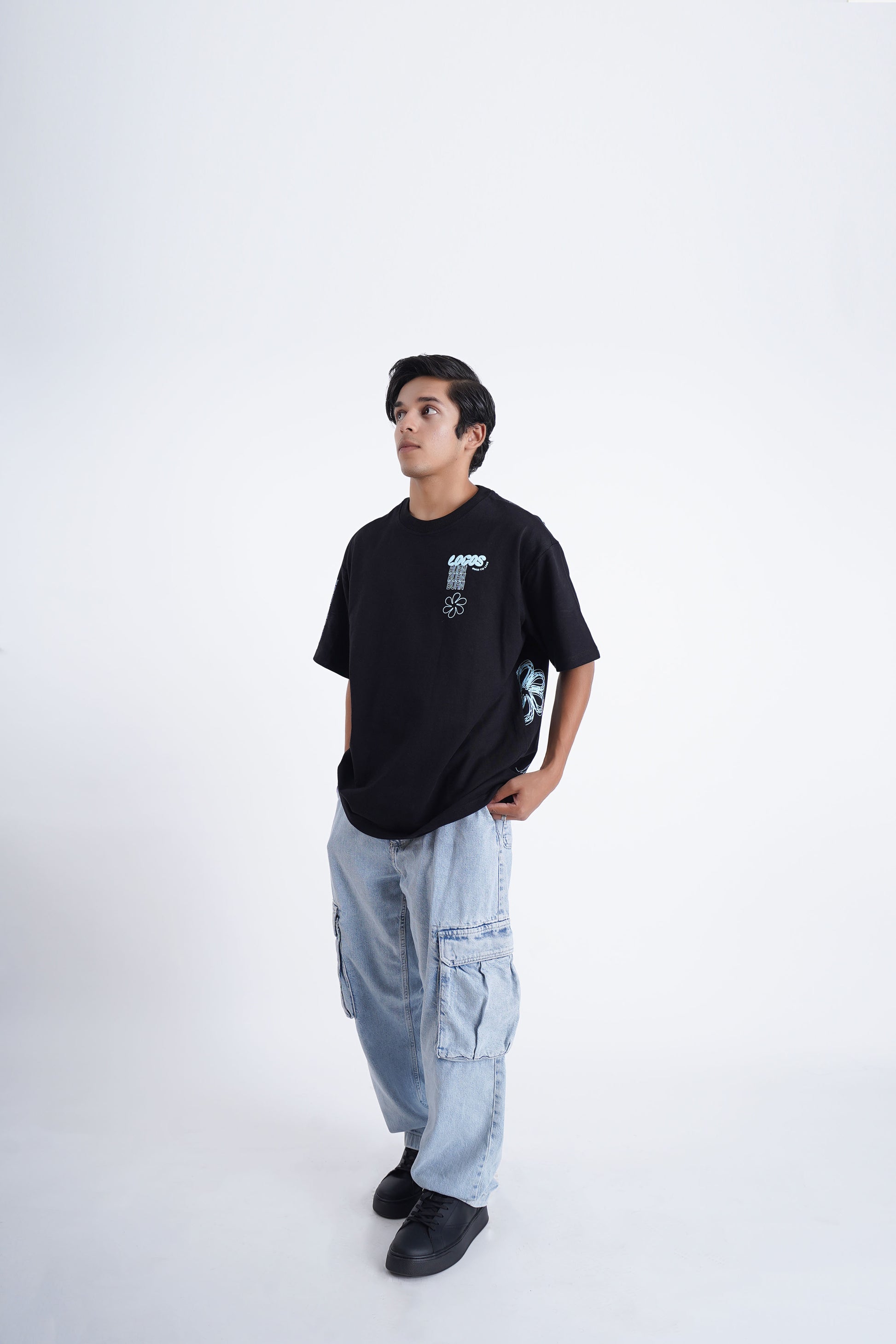 Loose-fitting tshirt featuring a round neck, short sleeves. Contrast prints on the front and back